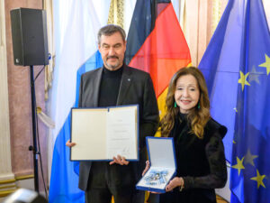 Η Βίκυ Λέανδρος έλαβε το Παράσημο του Τάγματος Αξίας της Βαυαρίας από τον Πρωθυπουργό Μάρκους Ζεντερ για το σύνολο του...