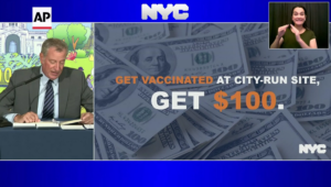 Ο δήμαρχος της Νέας Υόρκης Bill de Blasio, ανακοίνωσε ότι όποιος κάτοικος εμβολιάζεται τουλάχιστον με 1 δόση θα λαμβάνει 100...