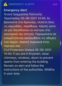 Νέο μήνυμα εστάλη από τον ευρωπαϊκό αριθμό έκτακτης ανάγκης 112 για την εκκένωση των περιοχών Κρυονέρι, Κοκκινόβραχος και Αφίδνες προς...