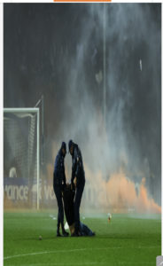 Από τη NOVA που μεταδίδει τον αγώνα, ειπώθηκε ότι ο αγώνας θα ξεκινήσει ξανά για ένα λεπτό και αμέσως μετά...