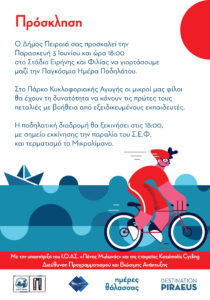 Με αφορμή την Παγκόσμια Ημέρα Ποδηλάτου, την Παρασκευή 3 Ιουνίου, ο Δήμος Πειραιά καλεί τους Πειραιώτες και όχι μόνο, σε...