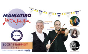 Η Ένωση Απανταχού Μανιατών «Η Μάνη» σας προσκαλεί στο Μανιάτικο Αντάμωμα το Σάββατο 30 Σεπτεμβρίου 2023 και ώρα 20:30 στο...