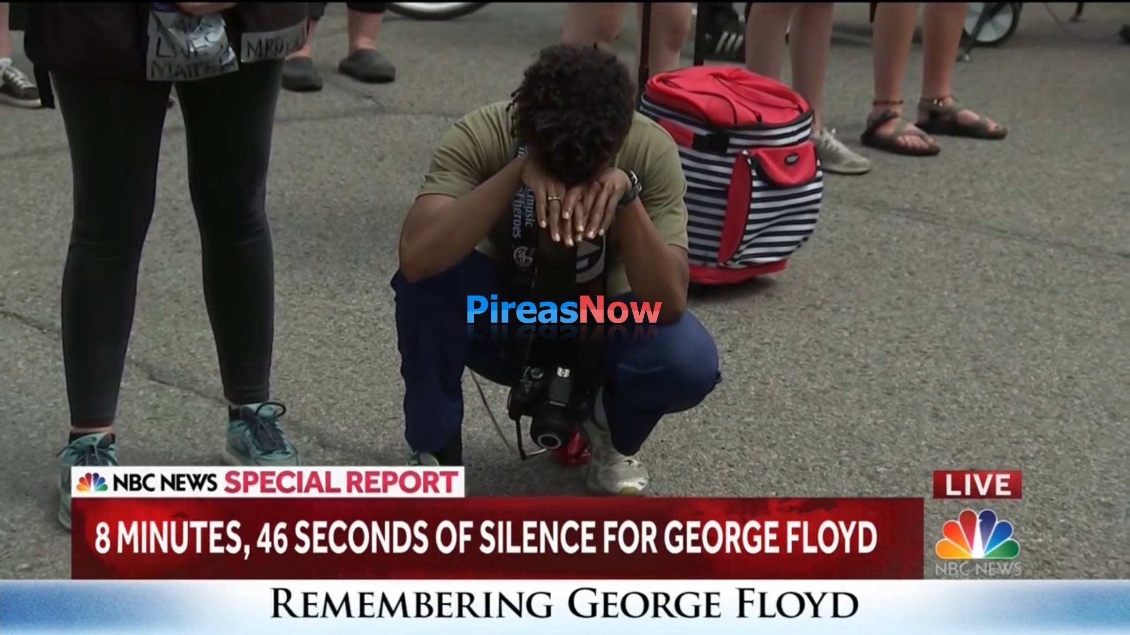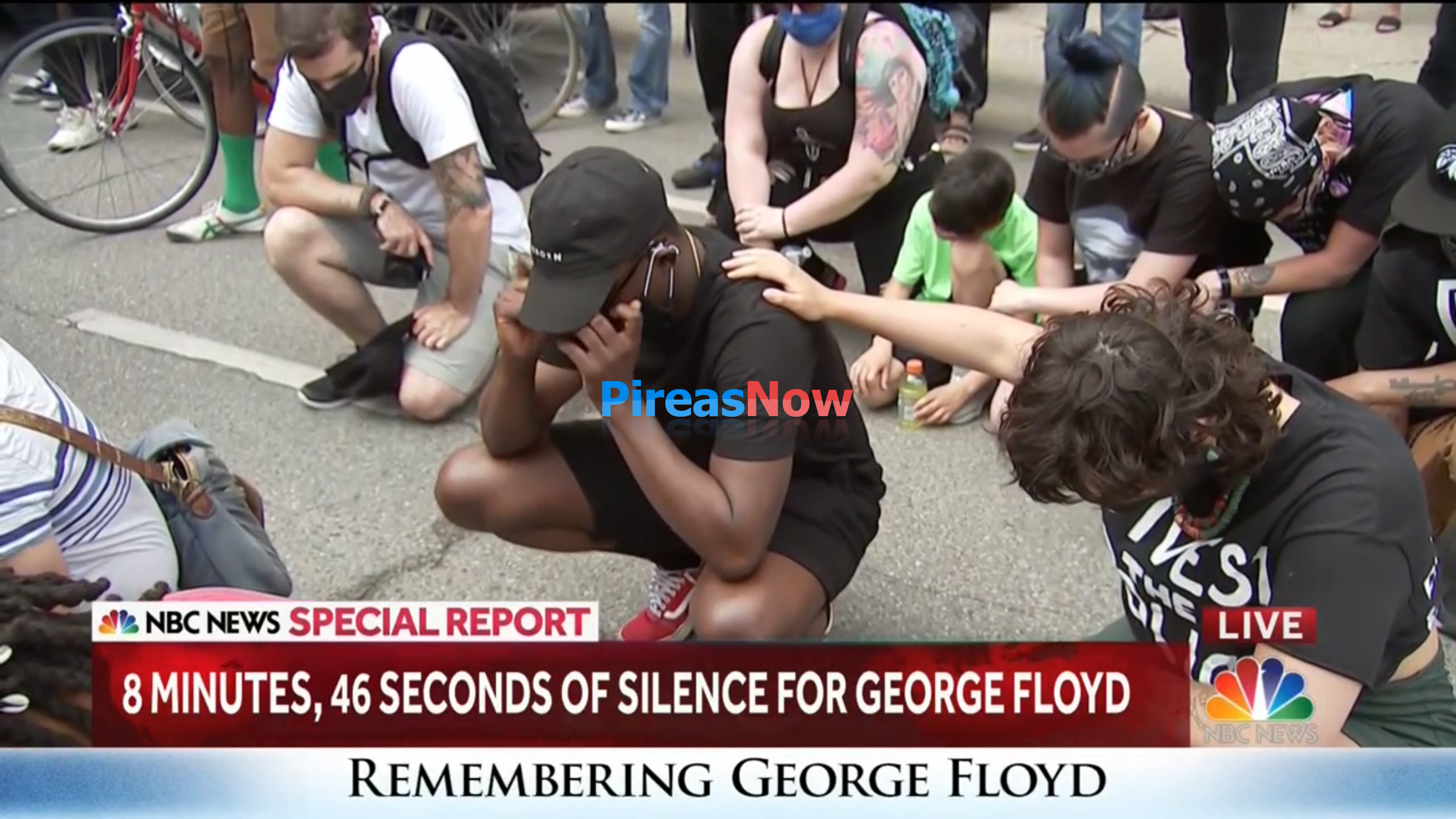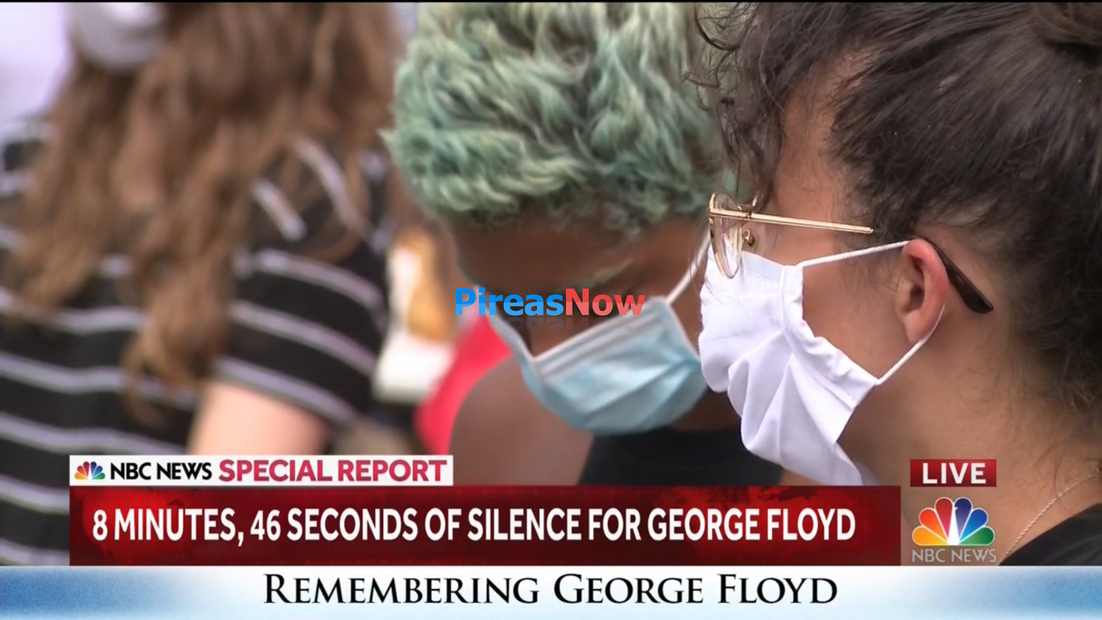“Και τώρα θα κρατήσουμε 8 λεπτά και 46 δευτερόλεπτα σιγή εις μνήμην του George Floyd, Αν σας φαίνονται πολλά, σκεφτείτε ότι τόσο του πάταγε ο αστυνομικός το γόνατο του στην πλάτη του”