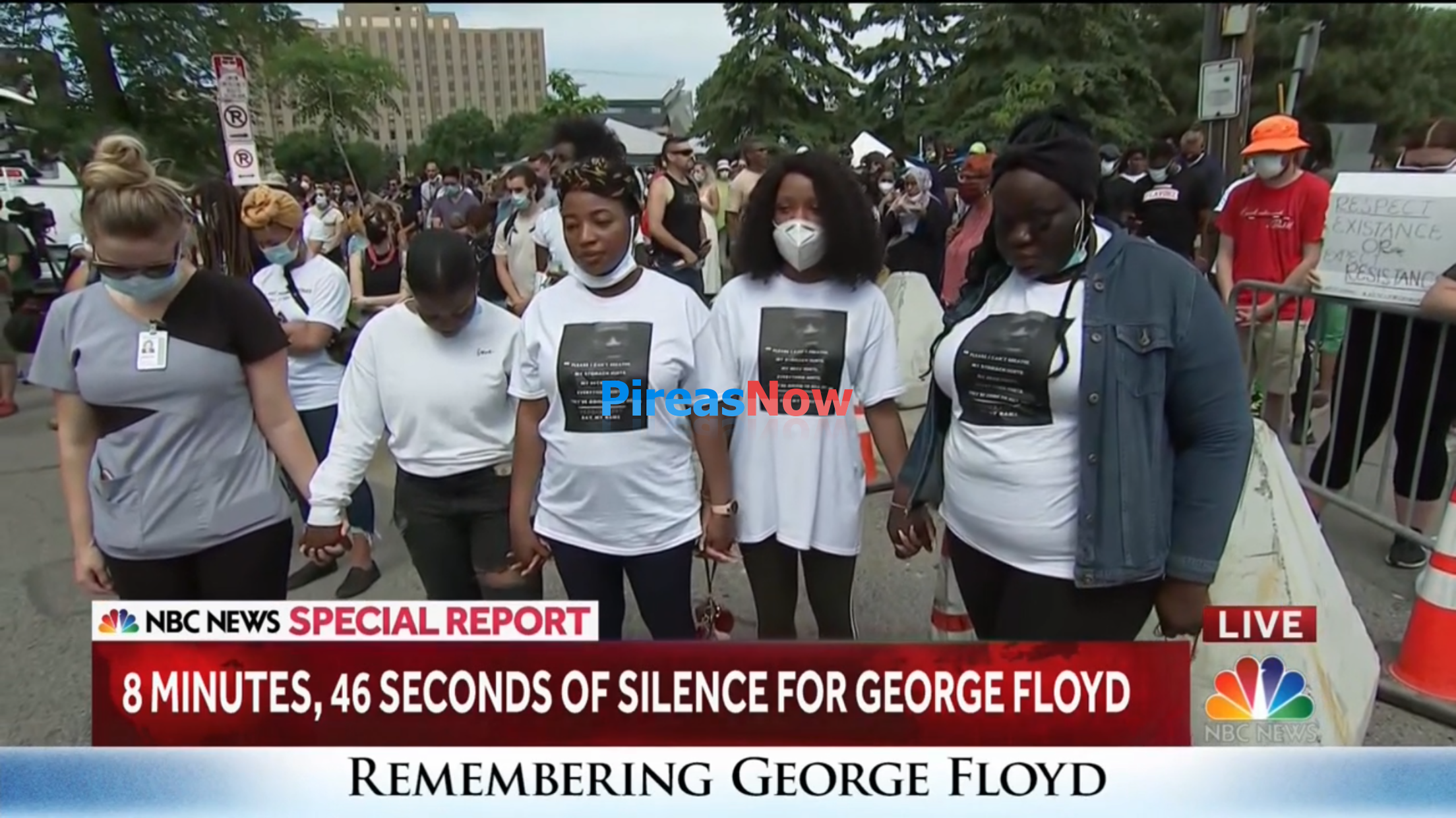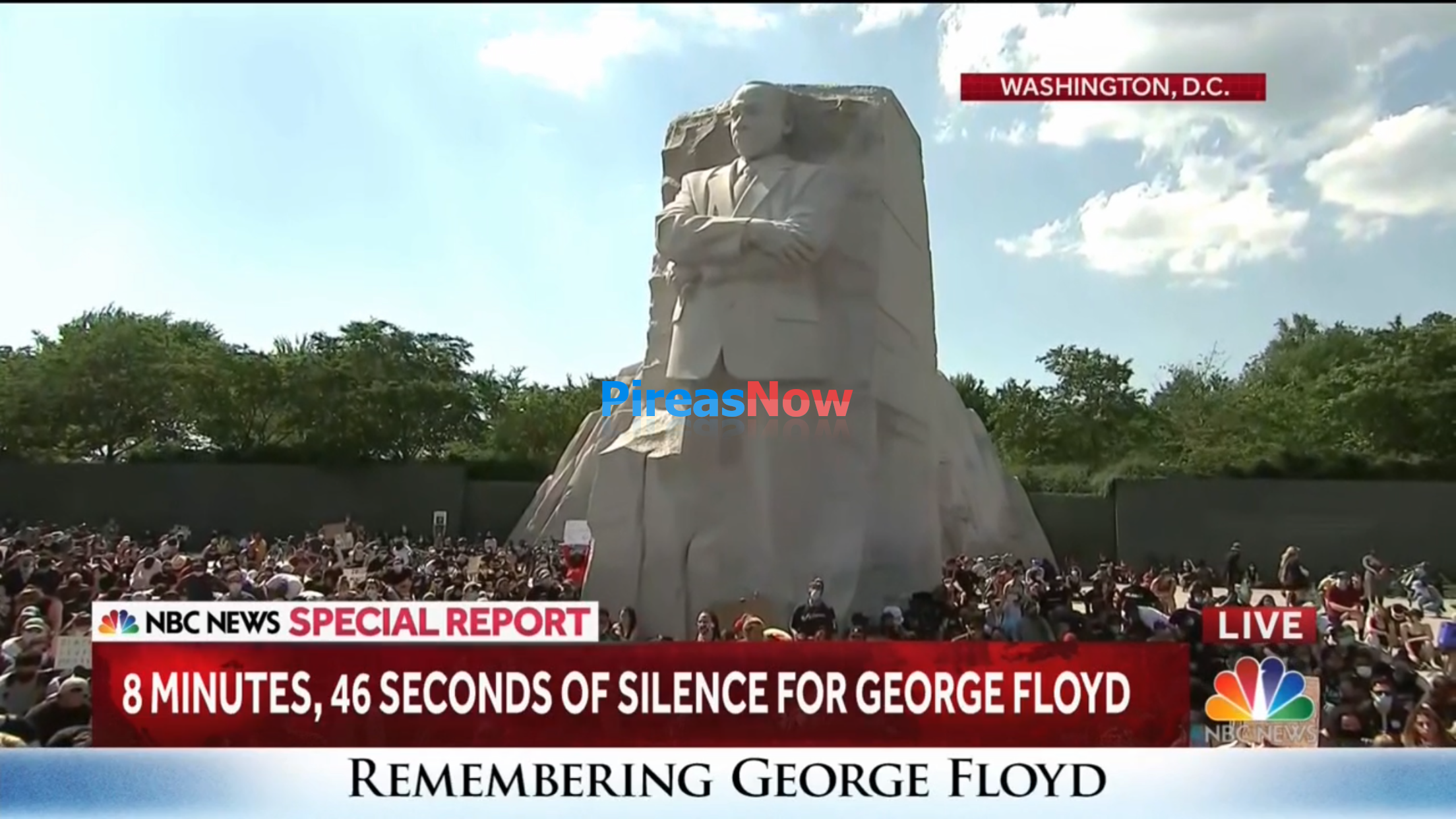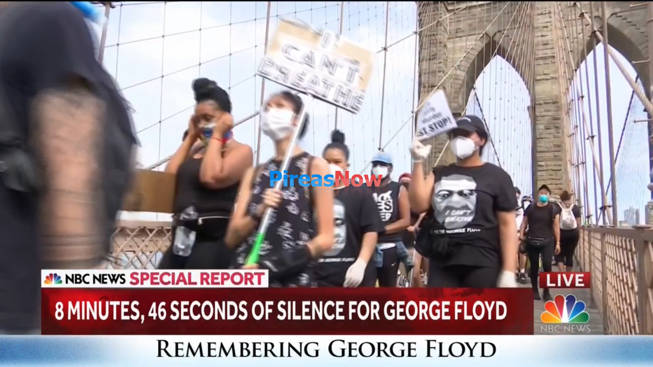 “Και τώρα θα κρατήσουμε 8 λεπτά και 46 δευτερόλεπτα σιγή εις μνήμην του George Floyd, Αν σας φαίνονται πολλά, σκεφτείτε ότι τόσο του πάταγε ο αστυνομικός το γόνατο του στην πλάτη του”