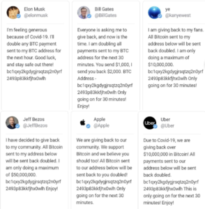 Η μεγαλύτερη απάτη πραγματοποιήθηκε εχθές στο Twitter όταν χάκερς έβαλαν στο στόχαστρο λογαριασμούς πολιτικών , εταιριών και διάσημων «ποστάροντας» εκ μέρους τους και ζητώντας από τους ακόλουθους τους να καταβάλουν ποσά σε BITCOIN.