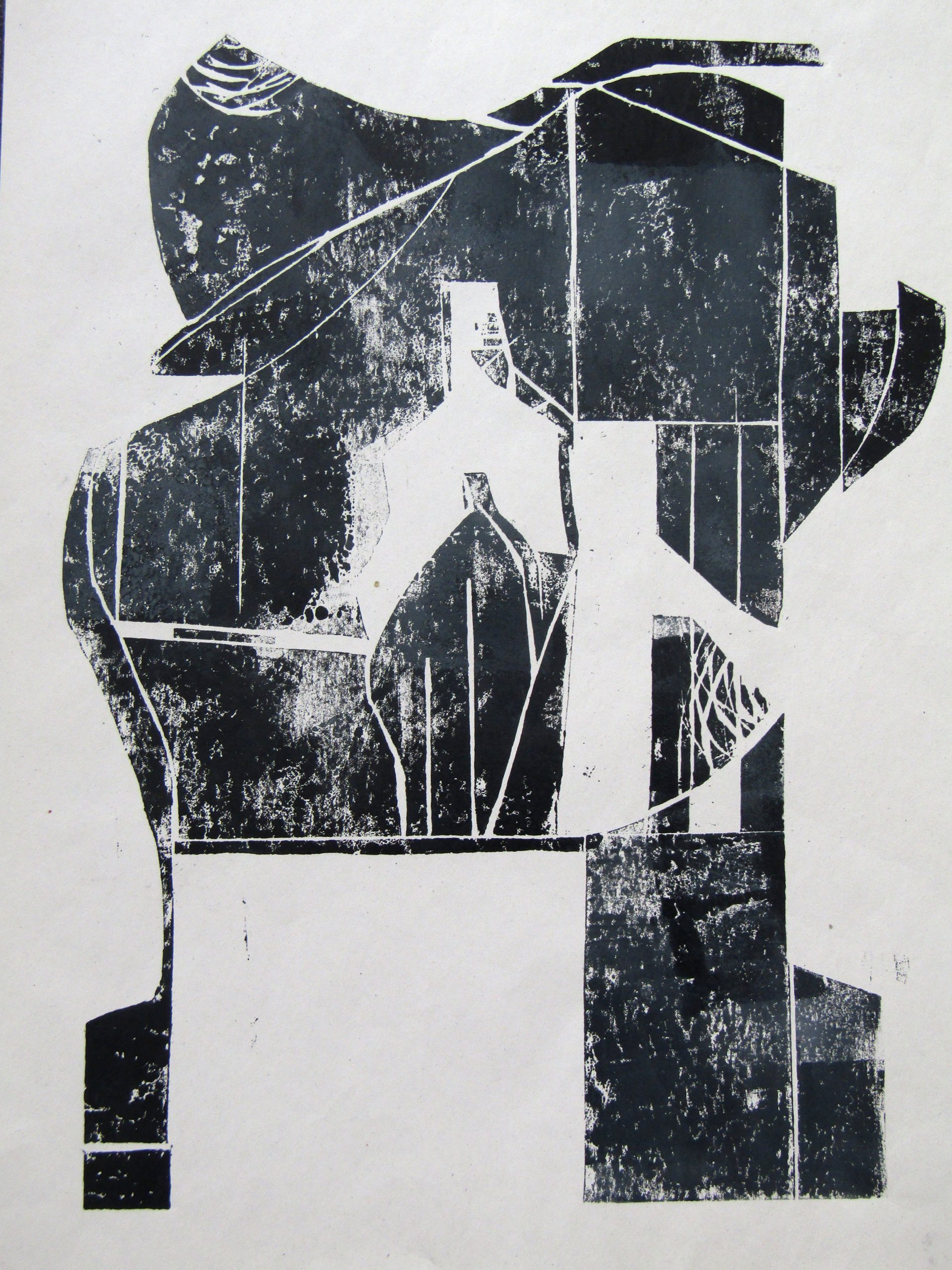 Για τη γεωμετρία η γραμμή χαρακτηρίζει νοητά ή εμφανές σχήματα που παρουσιάζουν σημεία κινούμενα στο χώρο με μια μόνη διάσταση, το μήκος. Ανάλογα της διαδρομής του σημείου στο χώρο, θα λέγαμε και στο χρόνο, η γραμμή μπορεί να πάρει πολλές μορφές, ευθείες, τεθλασμένες, καμπύλες κ.ο.. Έτσι κατ΄ αυτόν τον τρόπο και σε συνδυασμό με την αδρότητα του ξύλου, καθώς και με τις άλλες τεχνικές της χαρακτικής, προσπαθεί να απεικονίσει την ιδιαιτερότητα της κίνησης του ανθρώπινου συναισθήματος, τους εγκλεισμούς και τις φυγές του. Το ‘οξύμωρο’ σχήμα της εσωτερικής πραγματικότητας.
