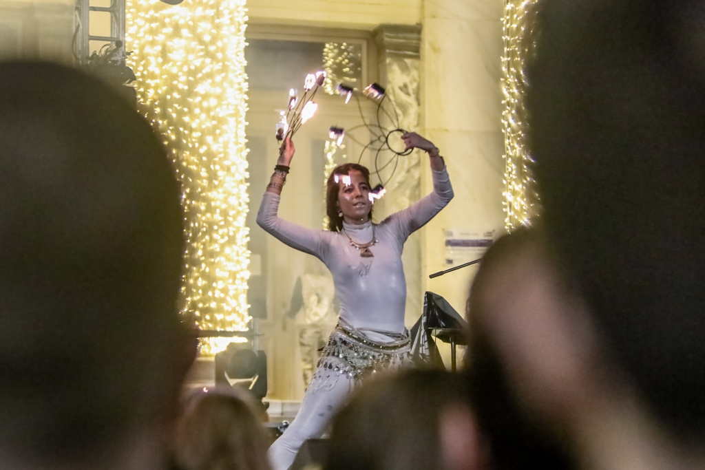 Στο μαγευτικό εορταστικό σκηνικό, τη «ζεστασιά» της πιο αγαπημένης γιορτής του χρόνου προσέδωσαν οι Χριστουγεννιάτικες μελωδίες της Φιλαρμονικής Ορχήστρας Πνευστών του Δήμου Πειραιά, οι φωνές της χορωδίας του Πρότυπου Μουσικού Κέντρου – Δημοτικού Ωδείου Πειραιά και της χορωδίας της Ιεράς Μητροπόλεως Πειραιά, με τη συμμετοχή της Angel Dancesport Academy.