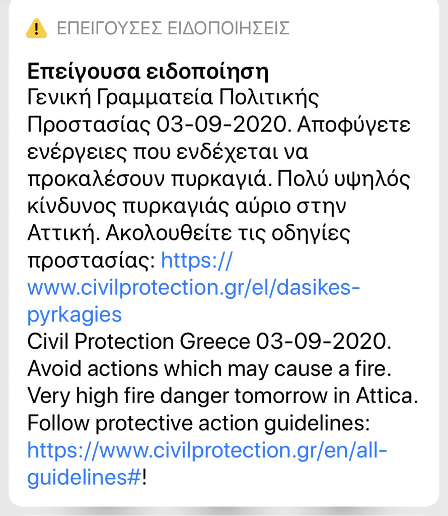 Επείγον Μήνυμα της Πολιτικής Προστασίας