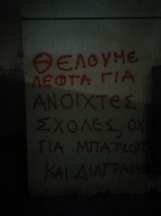 Kουκουλοφόροι έφτασαν στο πολιτικό γραφείο της Νίκης Κεραμέως στο Χαλάνδρι και έγραψαν στους τοίχους συνθήματα υπέρ του Δημήτρη Κουφοντίνα και κατά του νομοσχεδίου για την τριτοβάθμια εκπαίδευση.