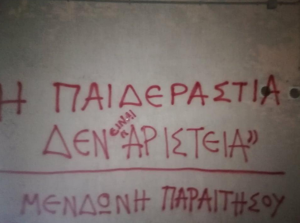 Τραμπούκοι έγραψαν συνθήματα στο γραφείο της Υπουργού Παιδείας Νίκης Κεραμέως υπέρ του καταδικασμένου για 11 δολοφονίες Δημήτρη Κουφοντίνα κι εναντίον του νόμου για την φύλαξη των ΑΕΙ από έκνομες δραστηριότητες. Είναι η δεύτερη φορά σε λίγες μέρες που το γραφείο της Υπουργού γίνεται στόχος. Ας γνωρίζουν ότι η κυβέρνηση ούτε τρομοκρατείται, ούτε εκβιάζεται. Υπερασπίζεται τη Δημοκρατία και το κράτος δικαίου. Αυτό κάνει κι αυτό θα συνεχίσει να κάνει.