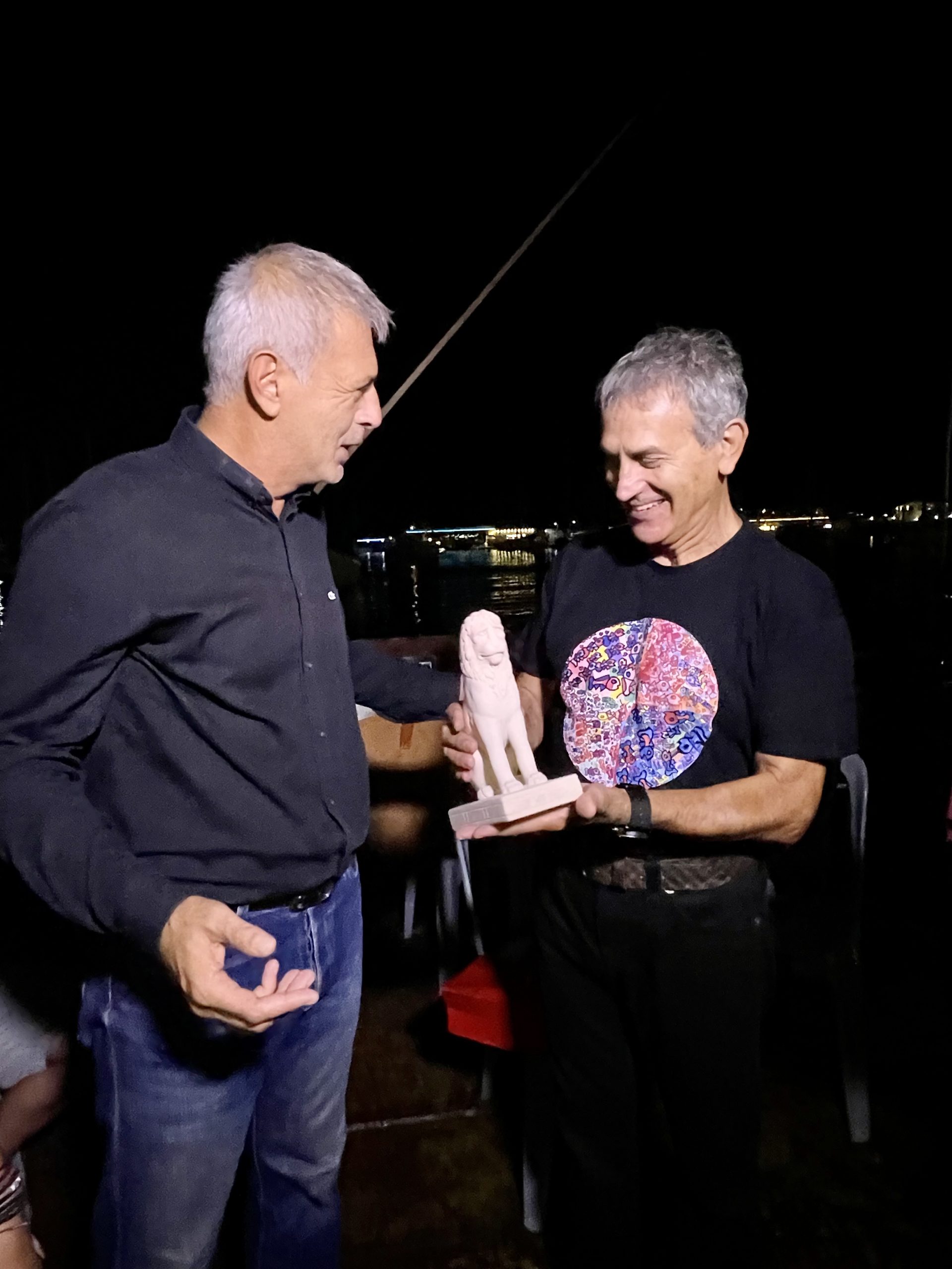 Πριν την έναρξη της συναυλίας ο κ. Μώραλης προσέφερε στον Γιώργο Νταλάρα μια μινιατούρα του Λέοντος του Πειραιά.