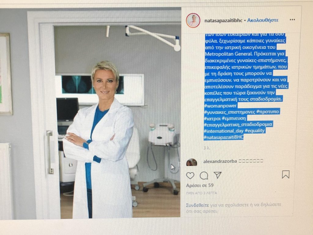 Ανάρτηση μήνυμα για την παγκόσμια Ημέρα αφιερωμένη στις γυναίκες επιστήμονες, έκανε η Νατάσα Καραμανλή. Συγκεκριμένα η σύζυγος του πρώην πρωθυπουργού τόνισε : “Θέλοντας να προωθήσουμε το πρότυπο της Γυναίκας – Επιστήμονα, με αφορμή την Παγκόσμια Ημέρα για τις γυναίκες επιστήμονες (11 Φεβρουαρίου), καθώς και τη σημασία των ίσων ευκαιριών και για τα δύο φύλα, ξεχωρίσαμε κάποιες γυναίκες από την ιατρική οικογένεια του Metropolitan General. Πρόκειται για διακεκριμένες γυναίκες-επιστήμονες, επικεφαλής ιατρικών τμημάτων, που με τη δράση τους μπορούν να εμπνεύσουν, να παροτρύνουν και να αποτελέσουν παράδειγμα για τις νέες κοπέλες που τώρα ξεκινούν την επαγγελματική τους σταδιοδρομία. #womanpower#γυναικες_επιστημονες#προτυπο#ιατροι#εμπνευση#επαγγελματικη_σταδιοδρομια#international_day#equality#natasapazaitiBHC