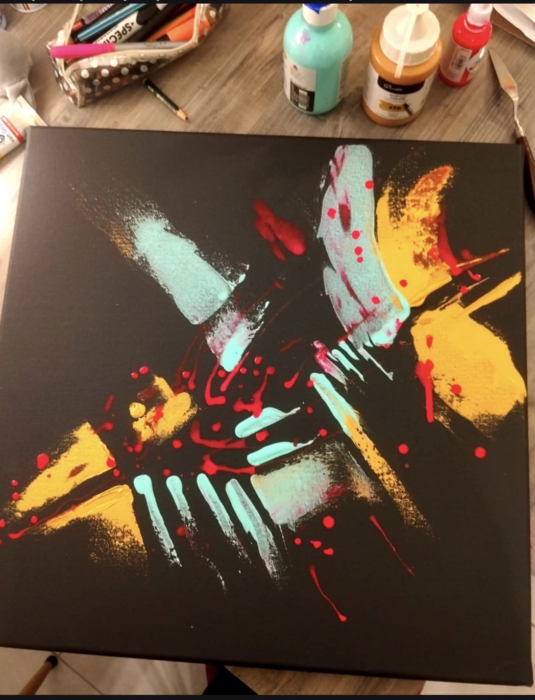 Τα έργα σας κινούνται χωρίς αμφιβολία στον χώρο του εξπρεσιονισμού. Έντονη χρωματική παλέτα και δυναμική χειρονομία. Τι ήταν αυτό που σας ώθησε σε αυτήν τη γλώσσα; Μ.Κ.: Ο εξπρεσιονισμός για μένα δεν είναι επιλογή ύφους, είναι ανάγκη. Είναι ο μόνος τρόπος να αποτυπώσω το εσωτερικό τοπίο χωρίς φίλτρα, χωρίς ωραιοποίηση. Το χρώμα λειτουργεί ως φωνή· άλλοτε κραυγή, άλλοτε ψίθυρος. Η χειρονομία είναι το σώμα μου πάνω στον καμβά. Στα έργα σας συναντάμε επαναλαμβανόμενα σύμβολα, μορφές που μοιάζουν να αιωρούνται ή να βυθίζονται.