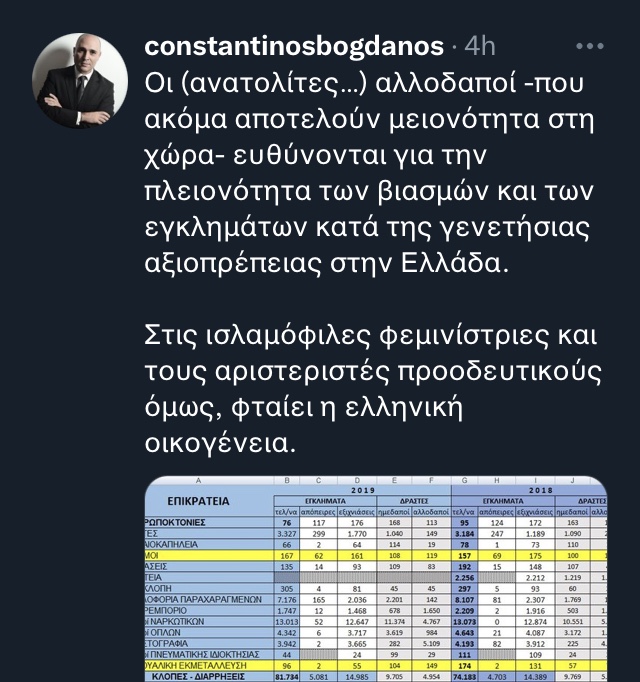 Μπογδάνος: «Οι αλλοδαποί ευθύνονται για τους βιασμούς στην Ελλάδα »
