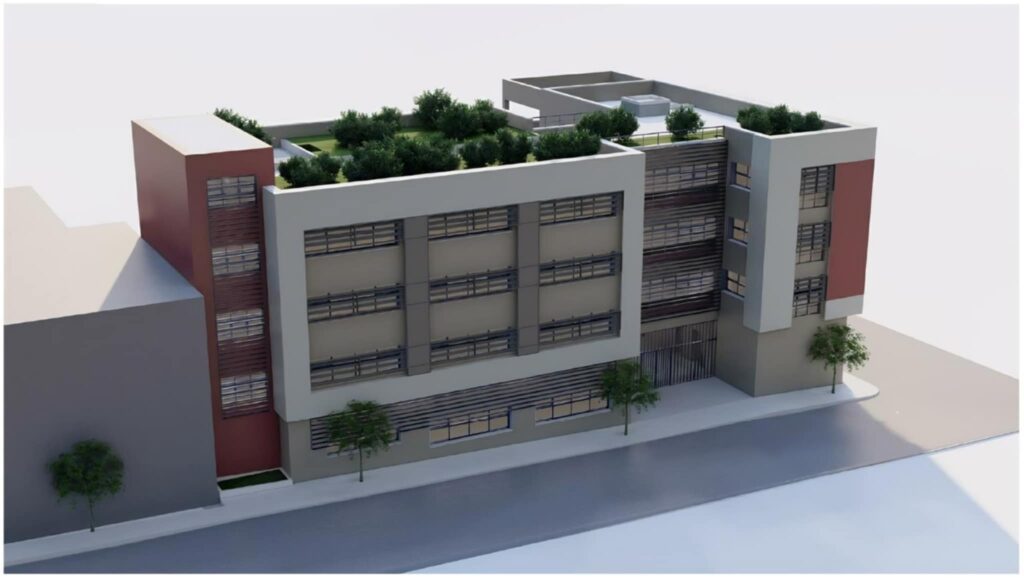 Παράλληλα, ο περιβάλλων χώρος θα διαμορφωθεί με χώρους πρασίνου, καθιστικά, γήπεδο μπάσκετ 3×3 και κερκίδες, δημιουργώντας ένα ασφαλές και φιλόξενο περιβάλλον για 270 μαθητές.