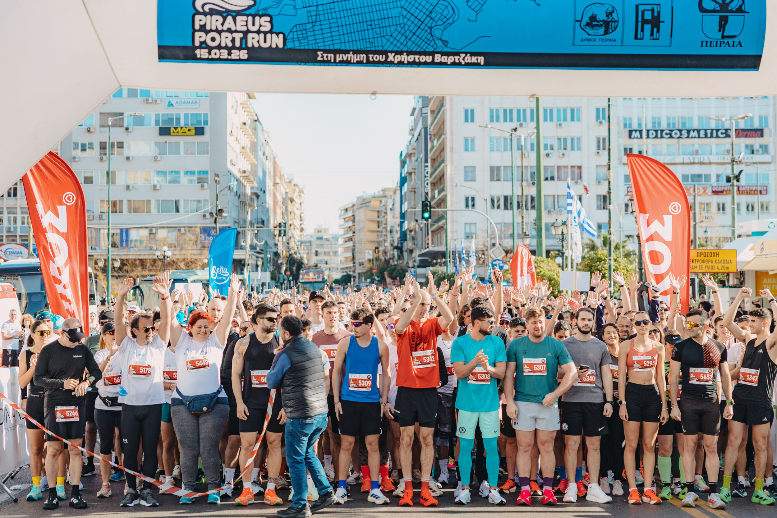Την εκκίνηση των αγώνων έδωσαν  ο Δήμαρχος Πειραιά Γιάννης Μώραλης, ο Εντεταλμένος Δημοτικός Σύμβουλος Αθλητισμού Νίκος Γέμελος, ο Πρόεδρος του Συλλόγου Δρομέων Υγείας Πειραιά Άγγελος Σάμιος και ο συντονιστής του «Piraeus Port Run», Ολυμπιονίκης και Διευθυντής της MyRace  Νίκος Πολιάς. Από νωρίς το πρωί, η «καρδιά» της πόλης χτυπούσε σε ρυθμούς αθλητισμού, με τους δρόμους να γεμίζουν παλμό, ενέργεια και χαμόγελα.
