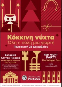 ΤΗΝ ΠΑΡΑΣΚΕΥΗ 22 ΔΕΚΕΜΒΡΙΟΥ έρχεται στον γεμάτο φως Πειραιά, η μεγάλη γιορτή των Χριστουγέννων, η «Κόκκινη Νύχτα»! Τα καταστήματα της...