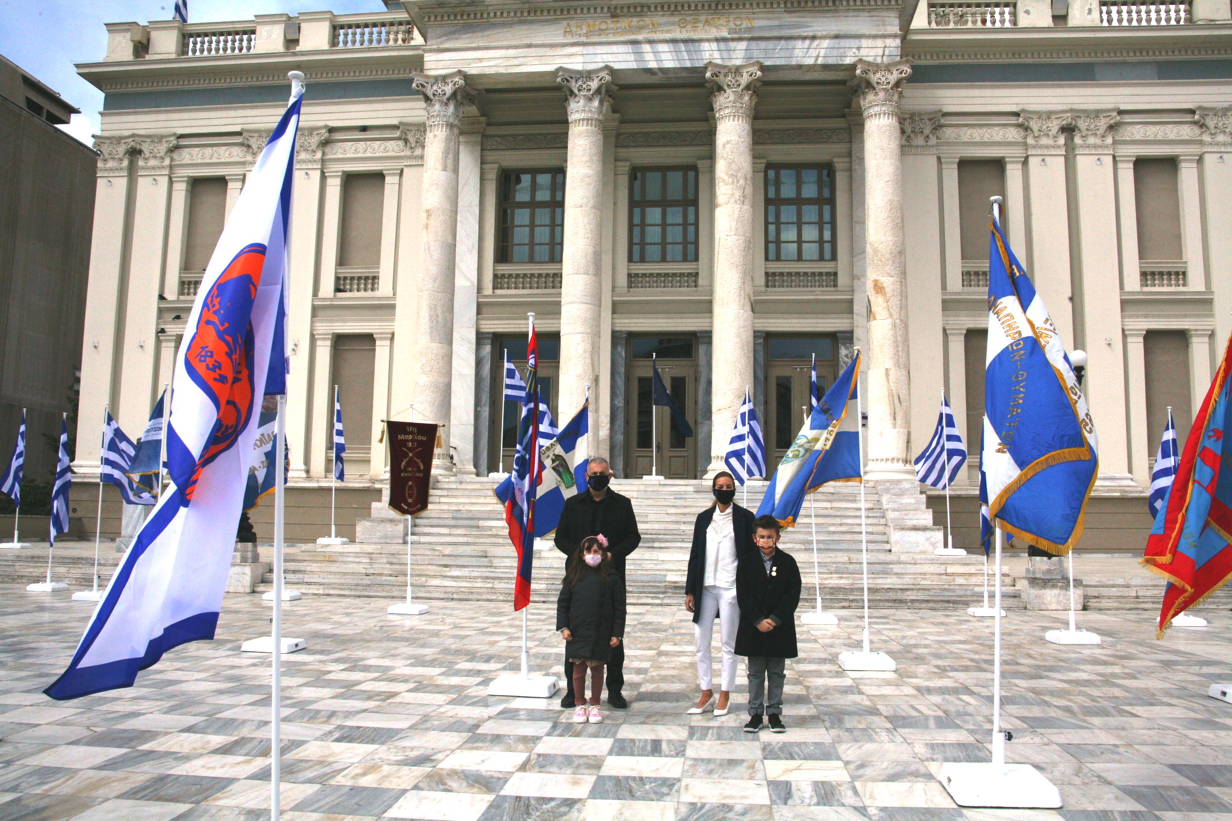 Στη συνέχεια ο κ. Μώραλης μαζί με την οικογένειά του παρευρέθηκαν στο Δημοτικό Θέατρο Πειραιά, όπου στον αύλειο χώρο του ιστορικού κτηρίου της πόλης μας κυματίζουν οι σημαίες και τα λάβαρα της επανάστασης των φορέων, τοπικών πολιτιστικών συλλόγων και σωματείων -που υπό κανονικές συνθήκες- θα μετείχαν στην παρέλαση στην πόλη μας.