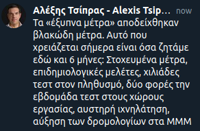 Τα «έξυπνα μέτρα» αποδείχθηκαν βλακώδη μέτρα. Αυτό που χρειάζεται σήμερα είναι όσα ζητάμε εδώ και 6 μήνες: Στοχευμένα μέτρα, επιδημιολογικές μελέτες, χιλιάδες τεστ στον πληθυσμό, δύο φορές την εβδομάδα τεστ στους χώρους εργασίας, αυστηρή ιχνηλάτηση, αύξηση των δρομολογίων στα ΜΜΜ